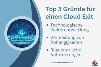Im Rahmen unserer neuen Studie zur Entwicklung des Schweizer Cloud-Marktes sind wir auch der Frage nachgegangen, welche Überlegungen Unternehmen beeinflussen, über eine Exit-Strategie nachzudenken oder konkret zu entwickeln.